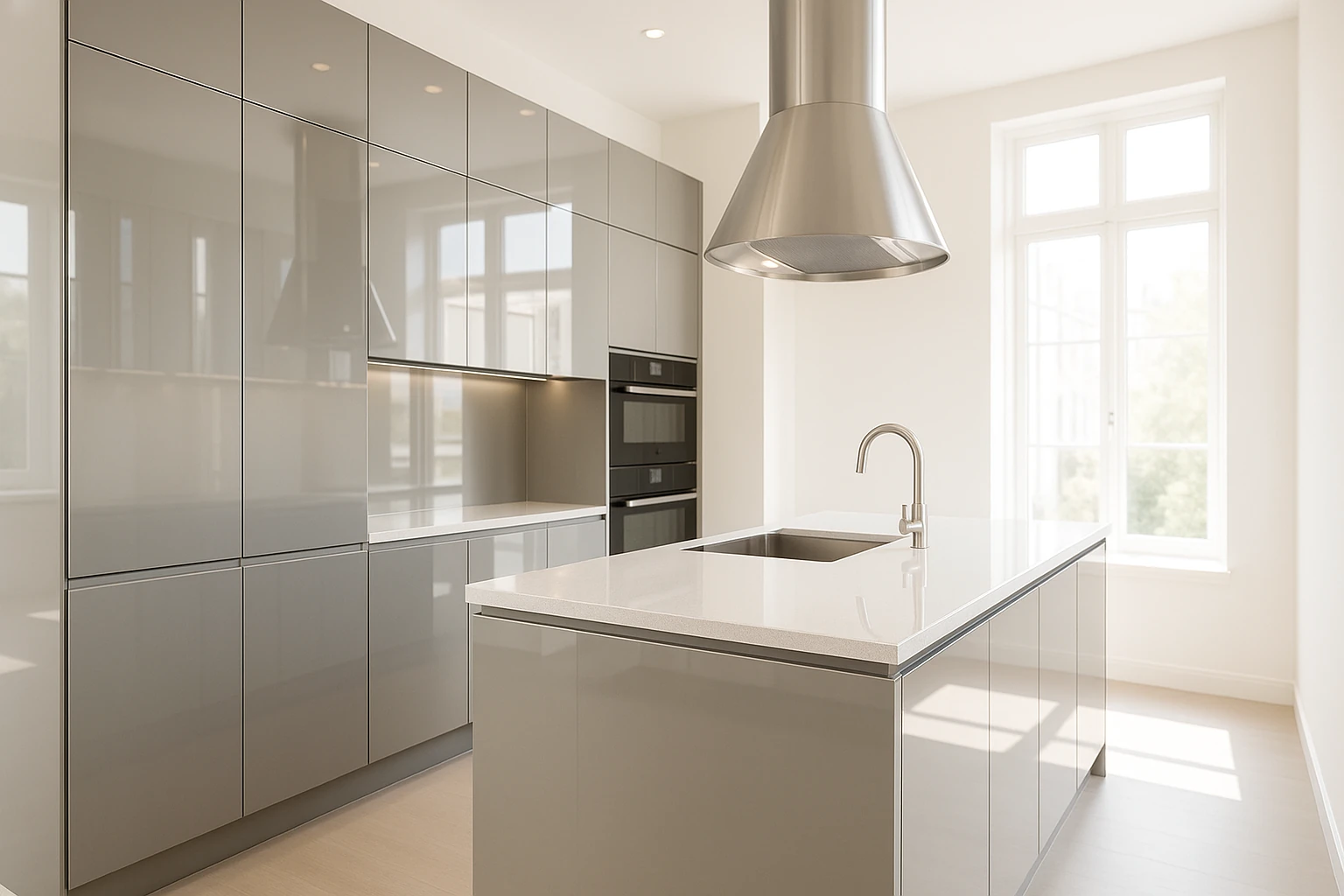 Gris espejo contemporáneo. Elegancia neutral con el máximo brillo especular.