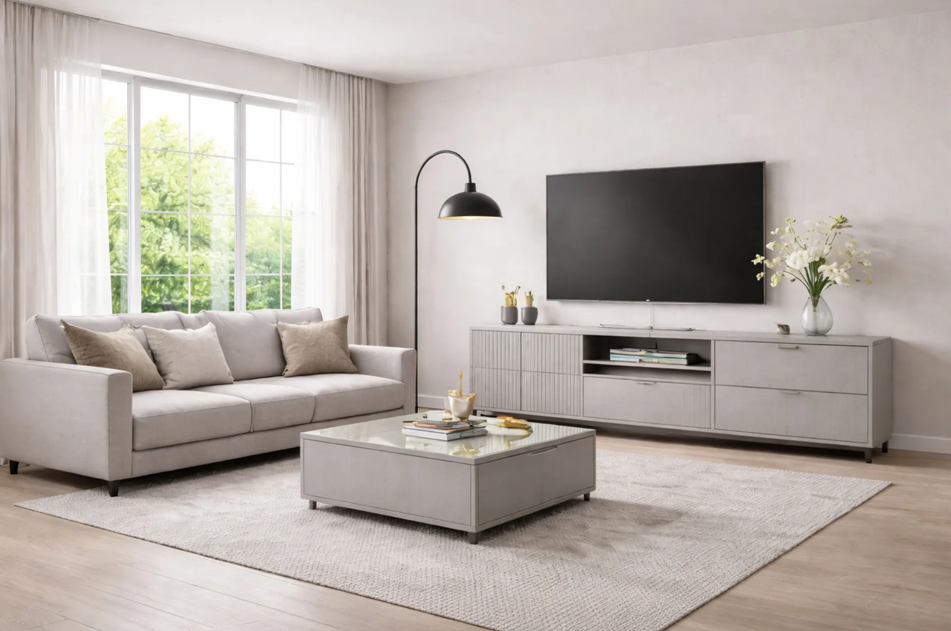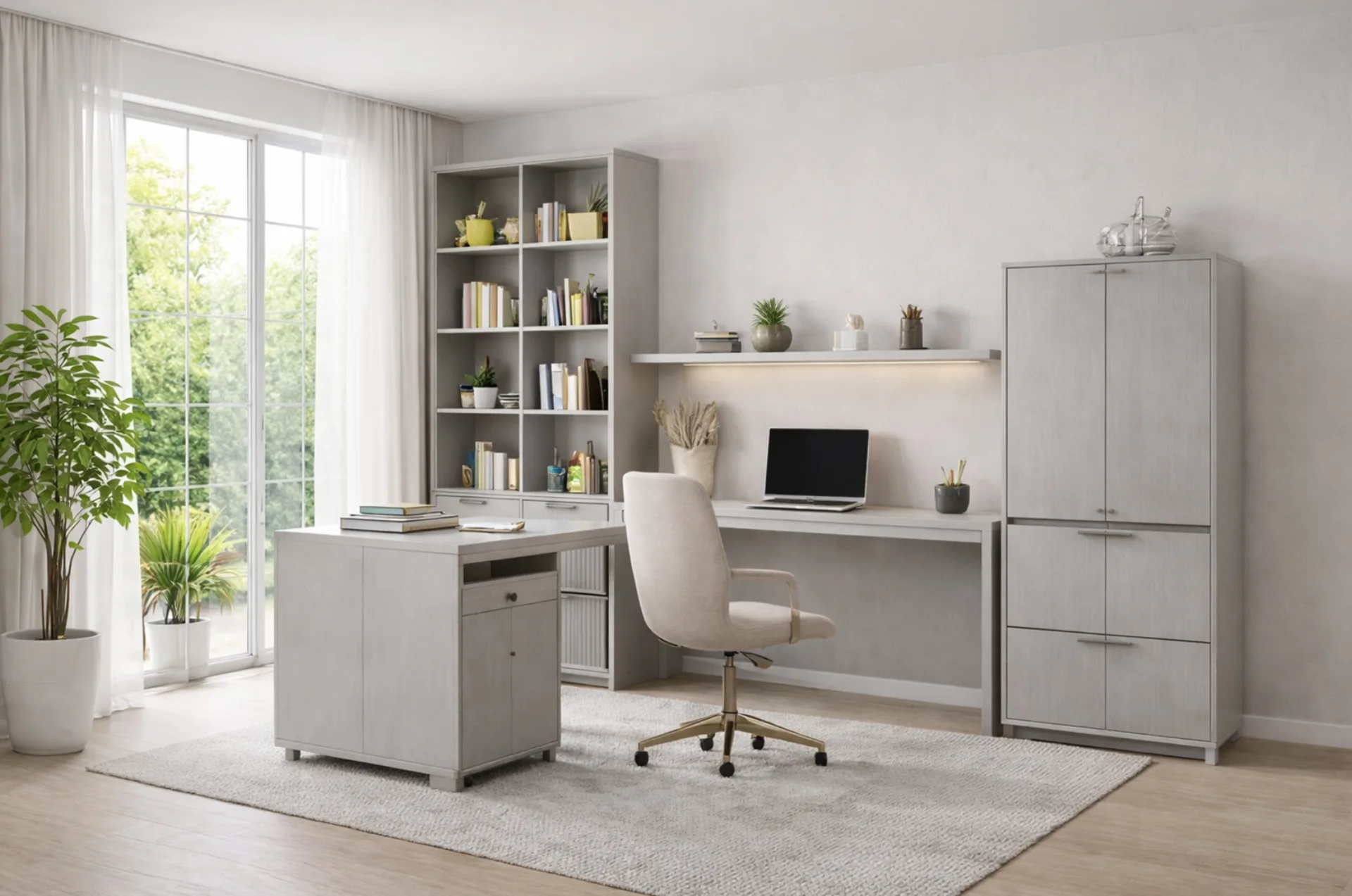 Gris claro con acabado ultra mate sedoso. Neutralidad luminosa con tacto anti-huella.