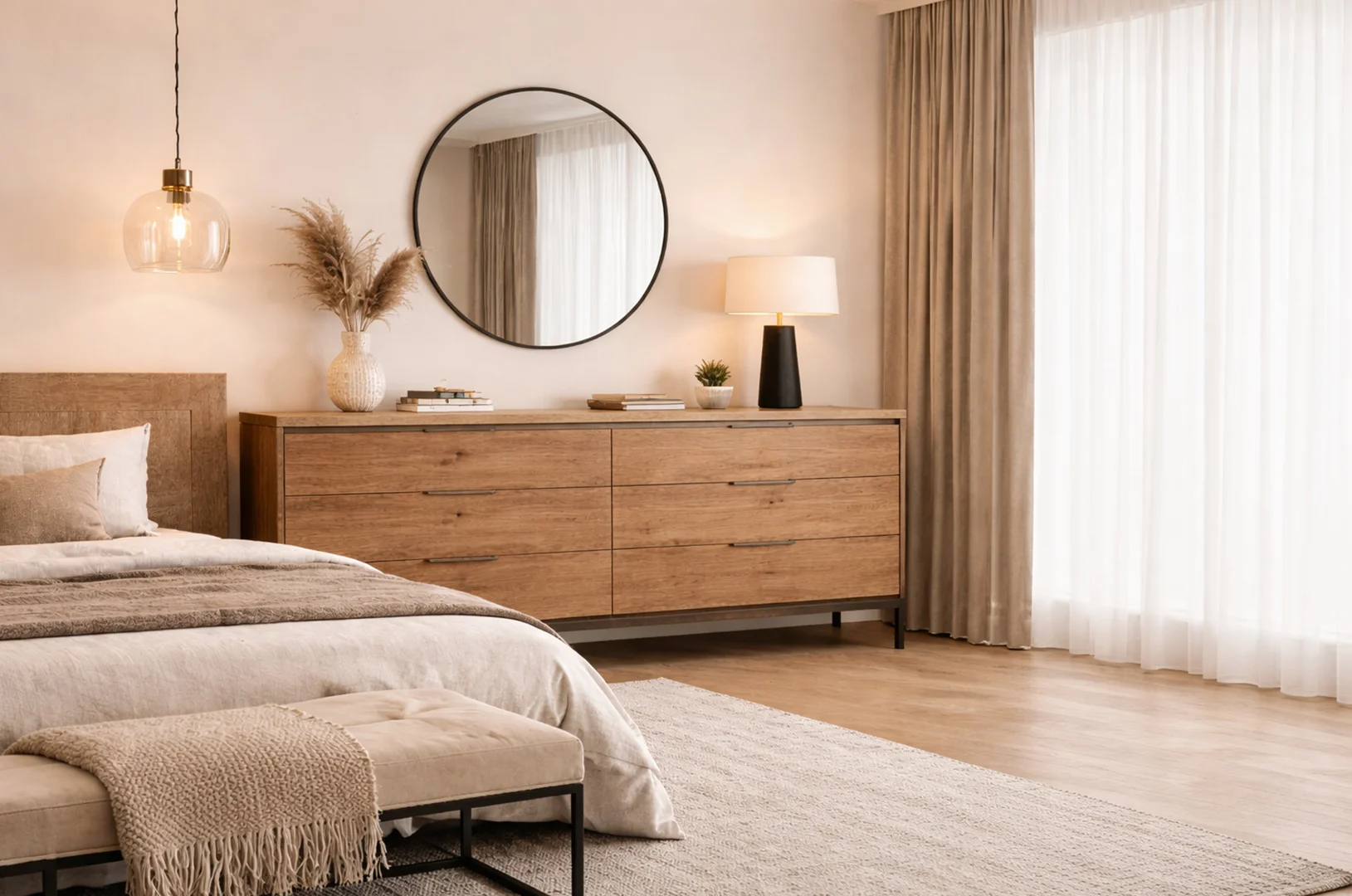 Tablero de melamina de estilo italiano con veta refinada. Equilibrio perfecto entre tradición y modernidad.