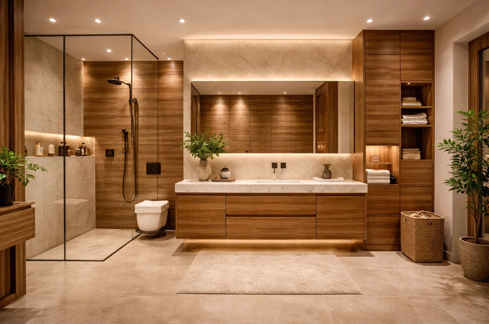 Tonos cálidos medios con carácter sofisticado. Versátil para cocinas y mobiliario.