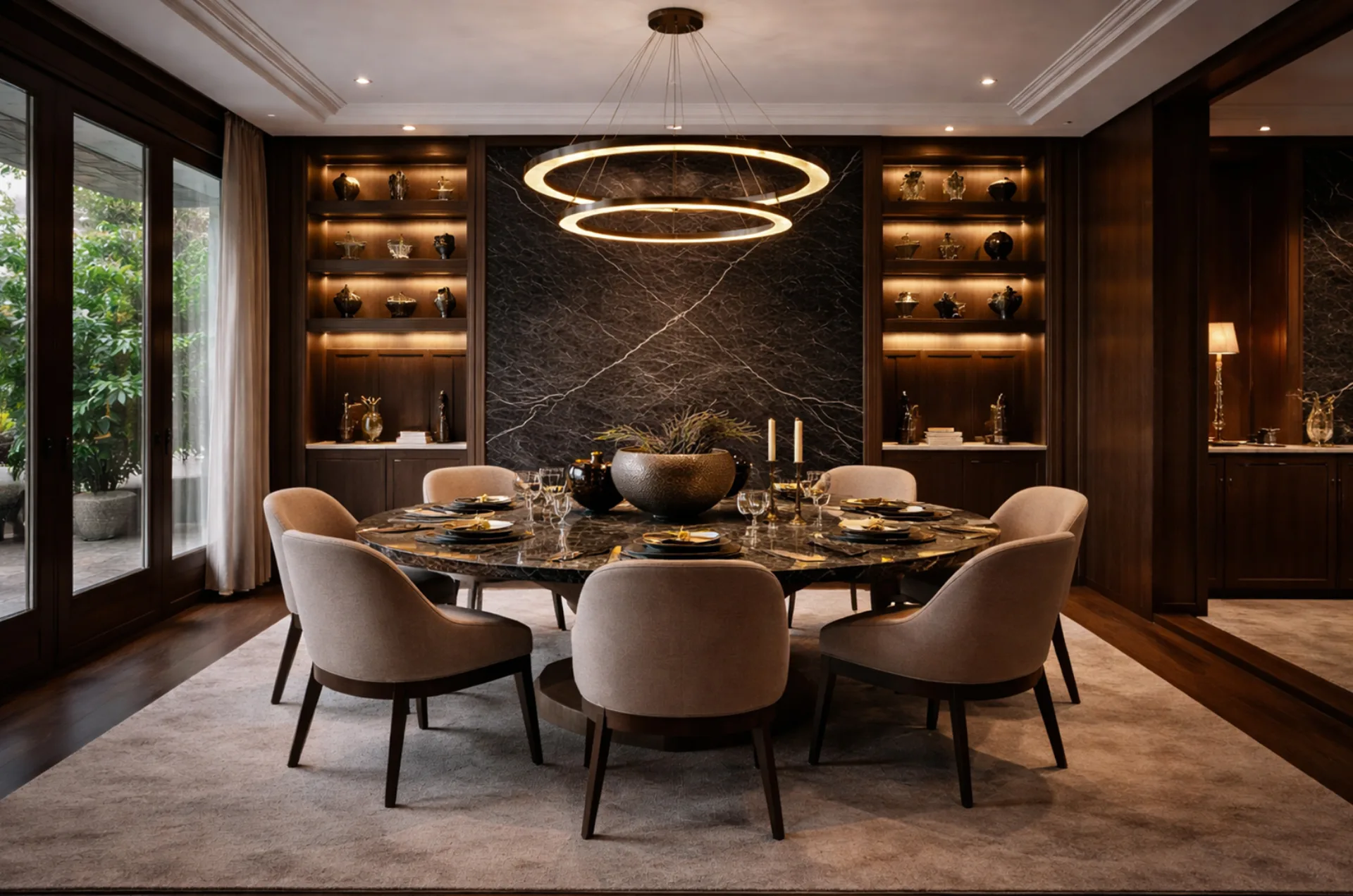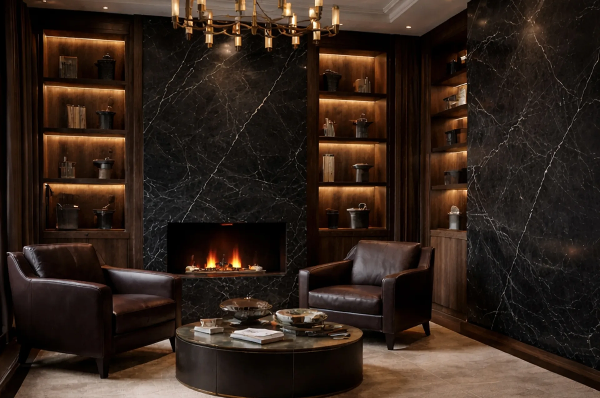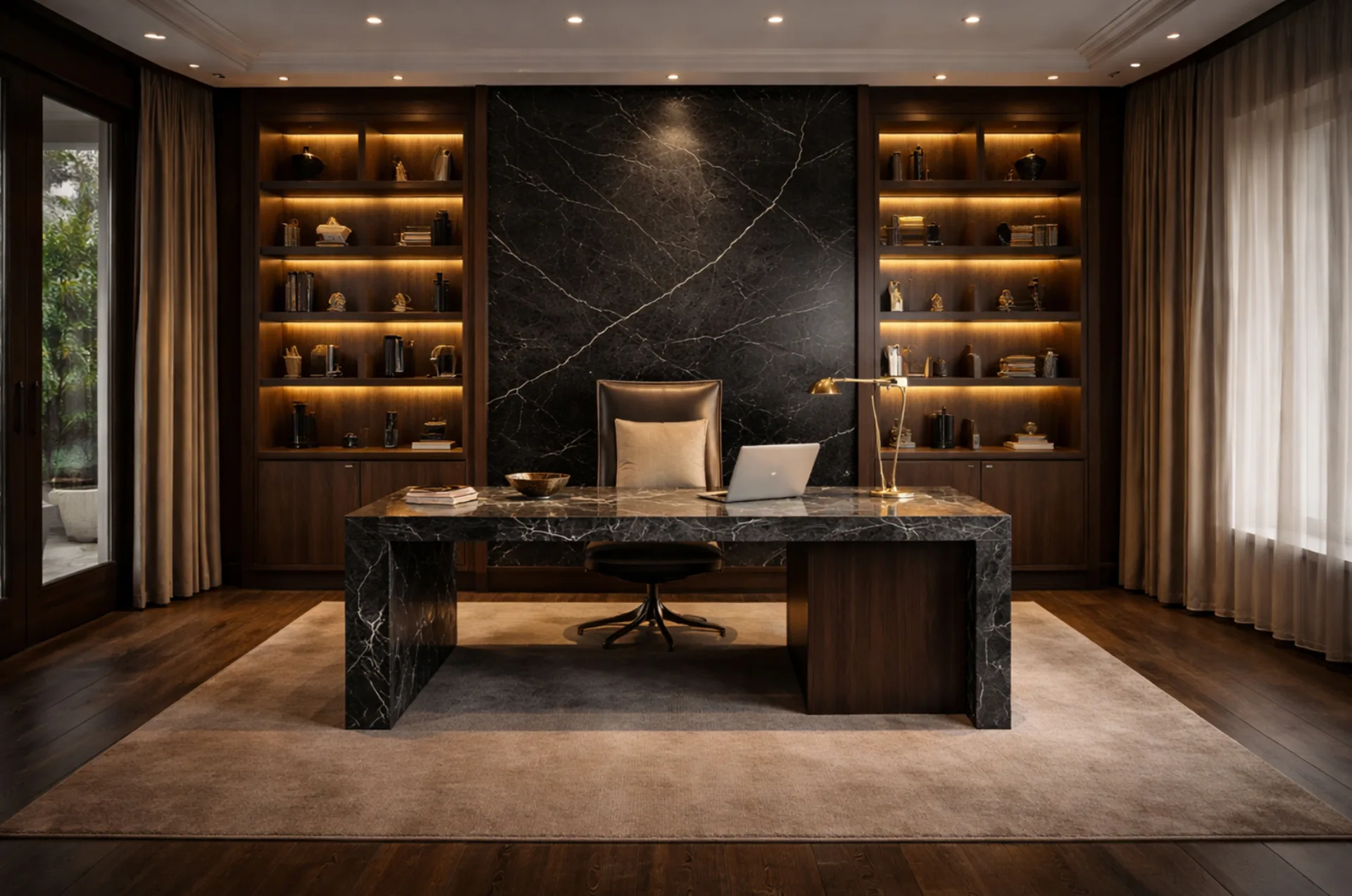 Apariencia tipo mármol negro con vetas blancas dramáticas. Lujo y sofisticación en cada superficie.
