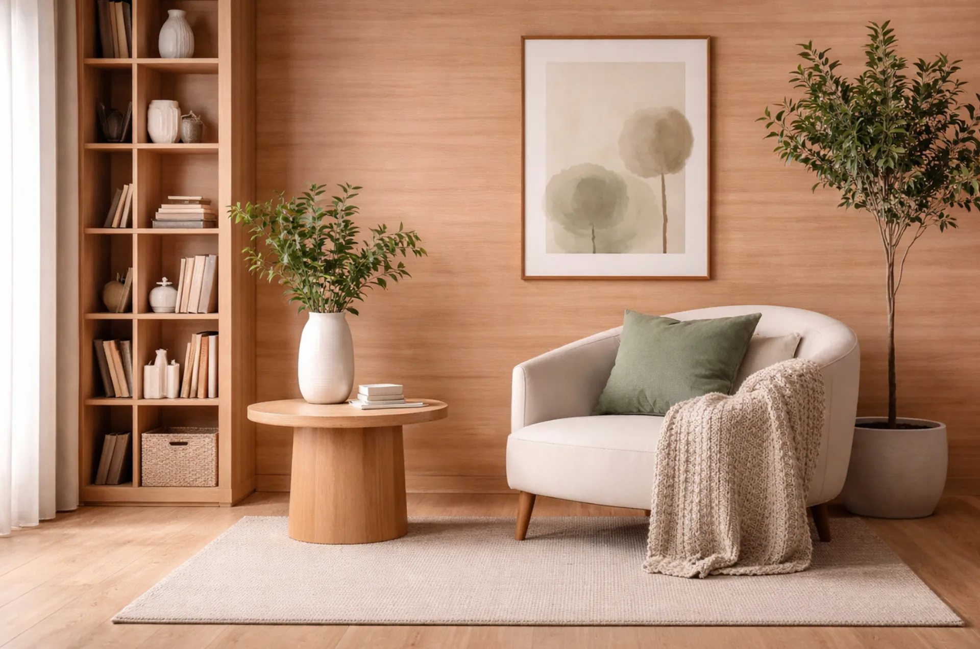 Tablero de melamina media-oscura con veta definida y poro sincronizado. Autenticidad neoyorquina al tacto.